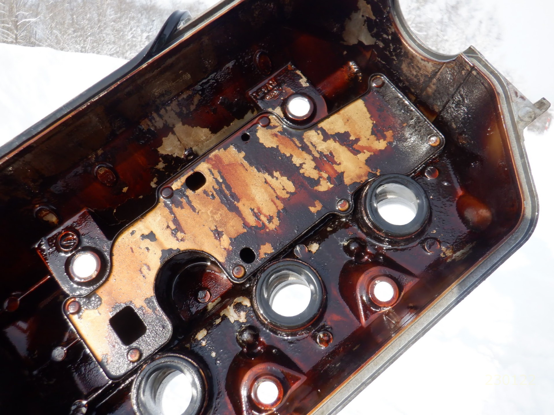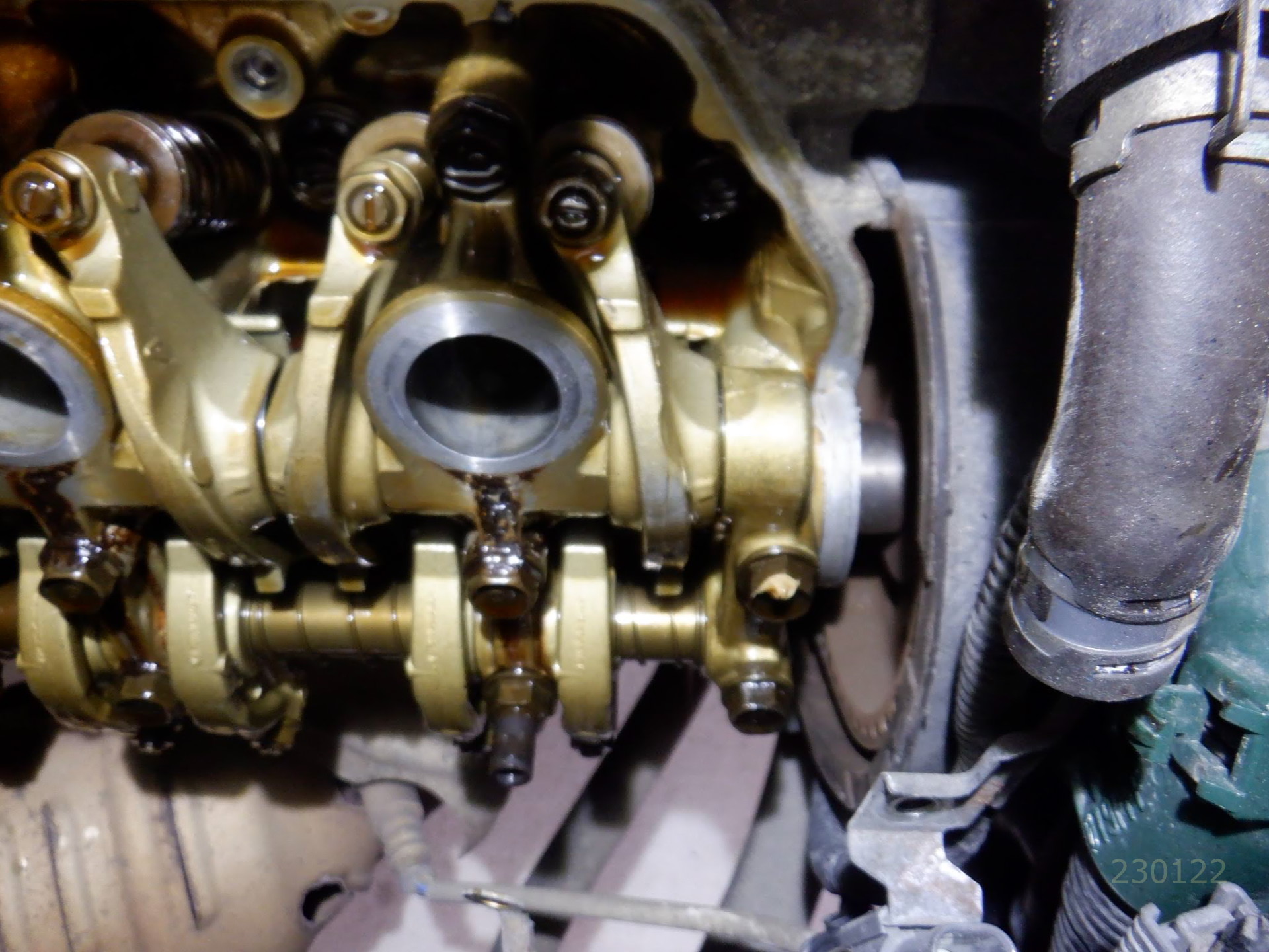 先日プラグ点検すると、プラグホールにエンジンオイルが溜まっていた。一番多く溜まっていたのは3番シリンダでした。気になるのでカムカバーのプラグホールガスケット含むカムカバーパッキンセットを交換。(カバーパッキン1個、プラグホールパッキン3個、取り付けボルトパッキン大、小)カムホルダー下側のプラグホールOリングも注文して手元になるが、交換にはタイベル外して、カムシャフト外してと、時間がかかるので今回はカムカバーだけ交換してオイル漏れが止まらないようならば諦めて次回交換とする。