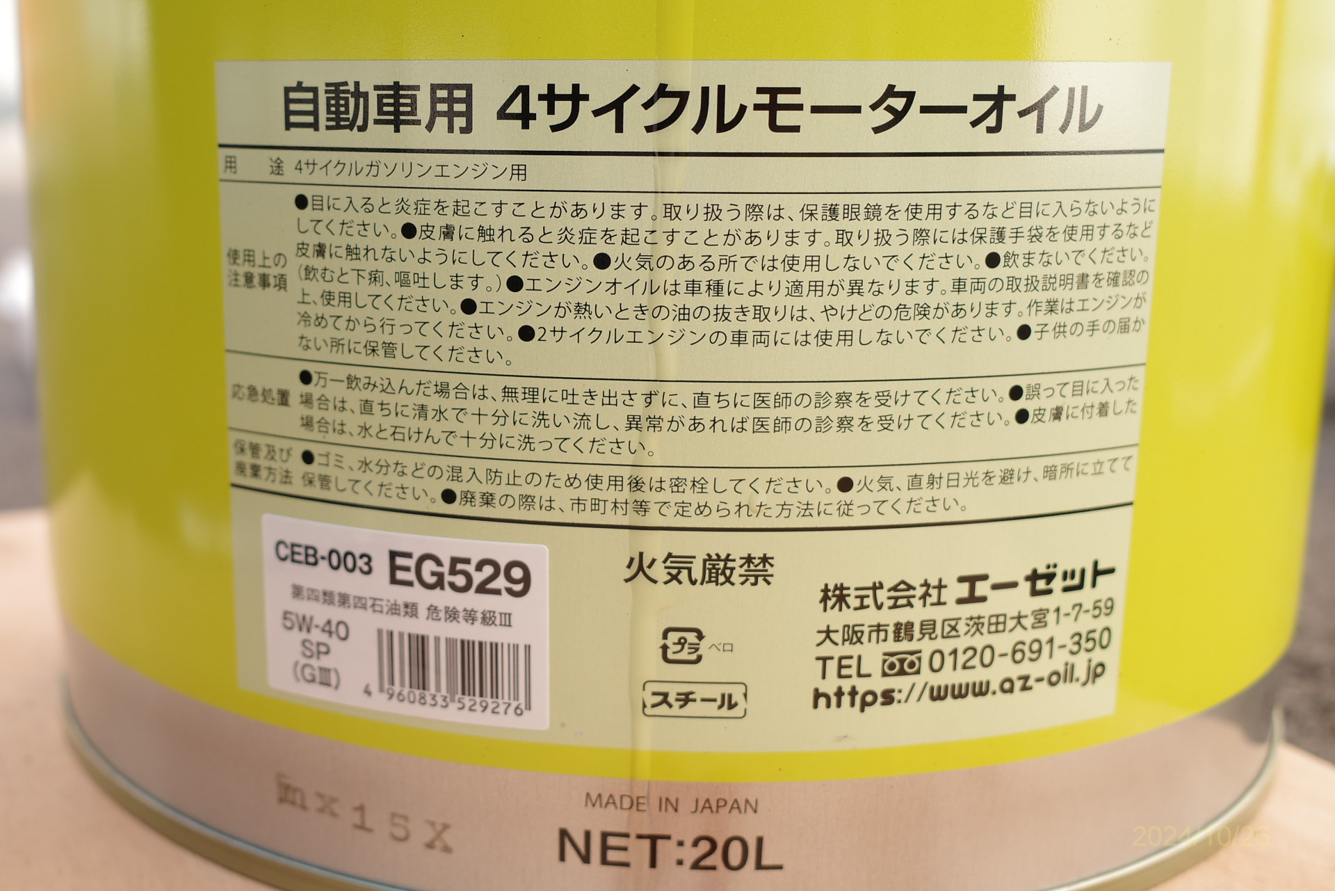 今回からはエンジンオイルコストの合理化のため、オイルはAZで購入。