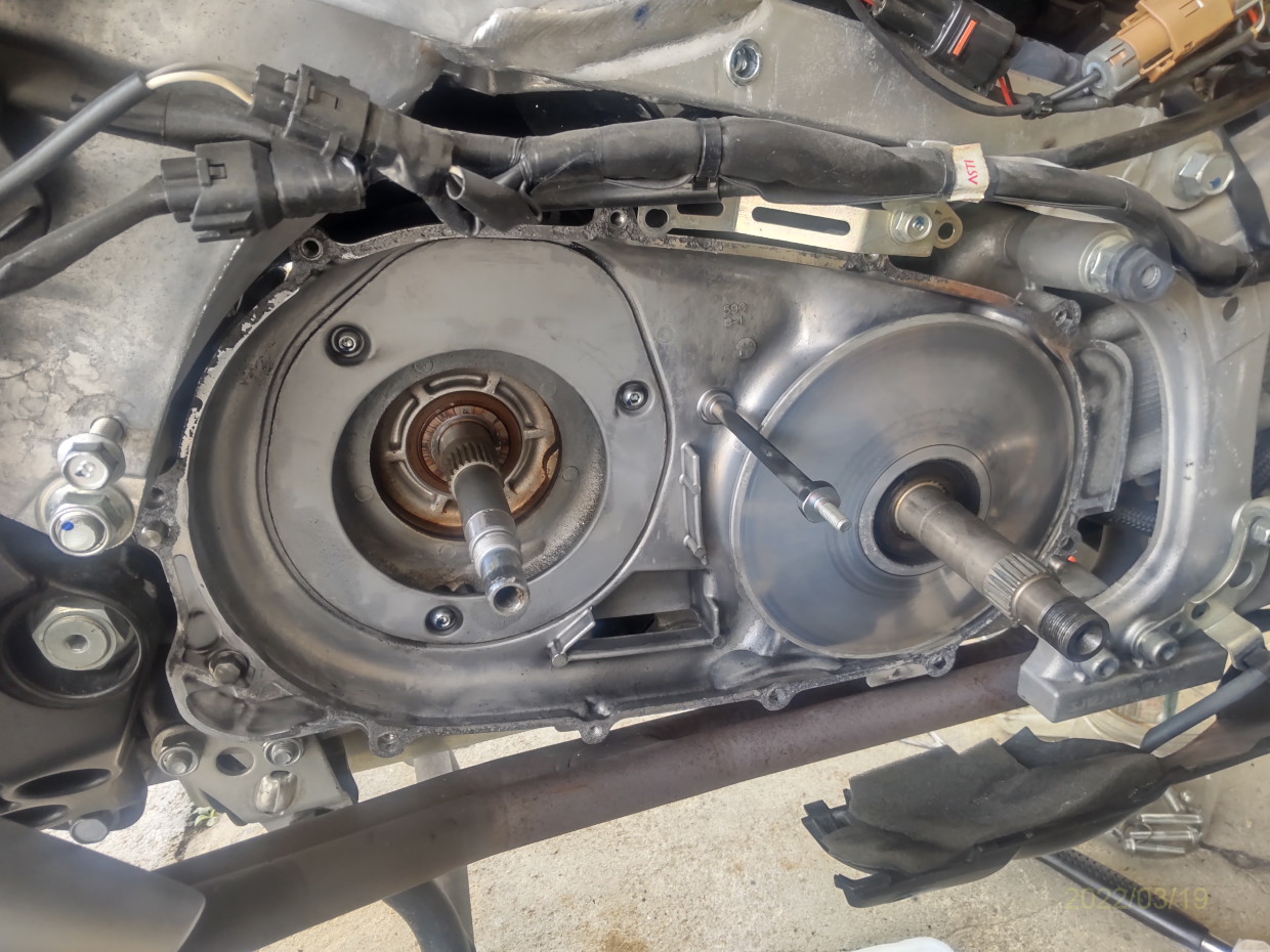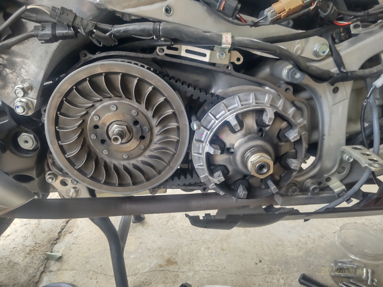 投稿日: 2022年3月19日2022年3月20日T-MAX530CVTベルト交換 右側ストリップ プライマリー29MM セカンダリー27mm ノーマルからイリジウム 左側ストリップ 新品 プーリー取り外し プライマリー受け側 手前が27000Km走行 交換ODOメーター V-beltリセット 交換部品
